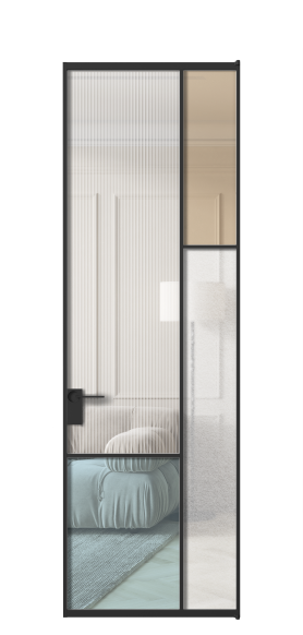 Лаконичный разделительный профиль внутренней раскладки полотна обеспечивает эстетический внешний вид конструкции и идеальную стыковку вставок из стекла.